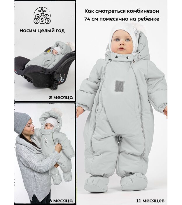 Комбинезон-конверт "трансформер", Серый, 163шм/1