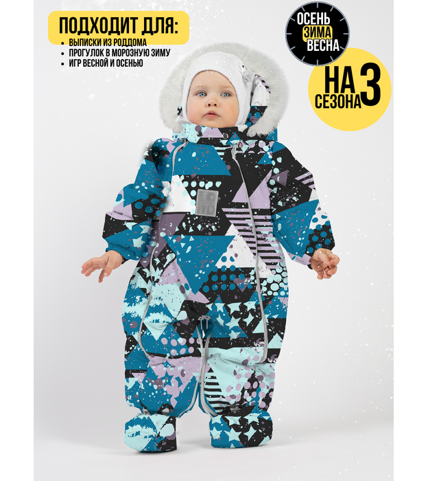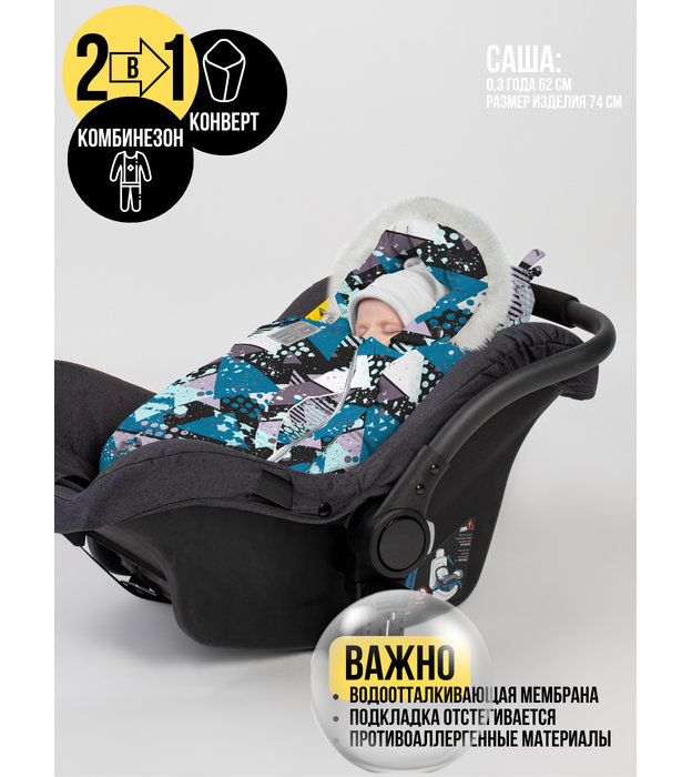 Комбинезон-конверт "трансформер", Бирюзовые треугольники 163ШМ/2