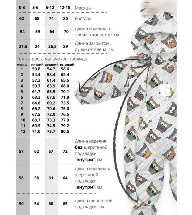 Комбинезон - трансформер детский, зимний. Изготовлен, из водонепроницаемого, не продуваемого, сверхпрочного материала и утеплен съемной подкладкой, в составе которой натуральная овечья шерсть. В зависимости от возраста вашего малыша и погодных условий вы можете использовать изделие как конверт или комбинезон. В режиме конверт модель идеальна для новорожденных, позволяет не тревожить малыша при одевании и раздевании во время сна, при желании с помощью молнии конверт легко трансформируется в комбинезон. Когда потеплеет, вы можете снять шерстяную подкладку, и комбинезон подойдет для весенней погоды. Отвороты на рукавах заменяют варежки, которые согреют маленькие ручки вашего малыша в холодную погоду. Защитная планка и плотно прилегающий к голове капюшон со съемной опушкой из натурального меха защитит от сильного ветра за счет вшитой утягивающей резинки. Цветовая гамма опушки возможна в кофейном, либо белом варианте. В комплекте отстегивающиеся пинетки.