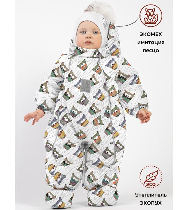 Комбинезон-конверт "трансформер", Совы на белом, 163ШМ/1
