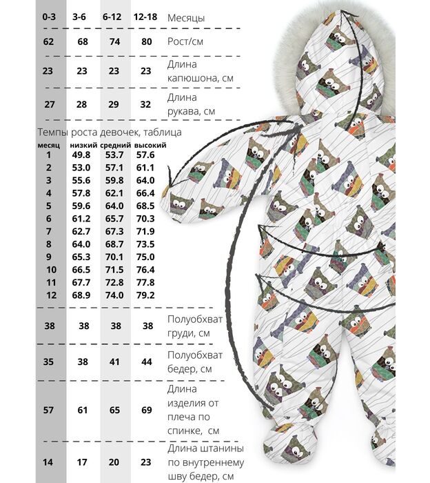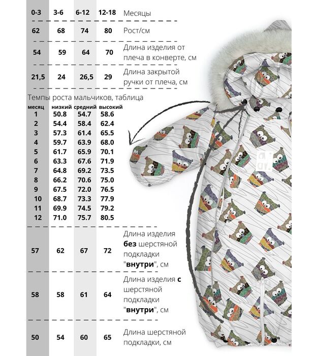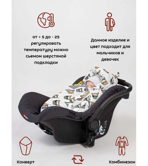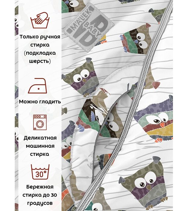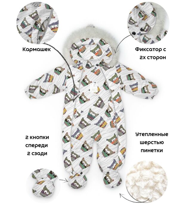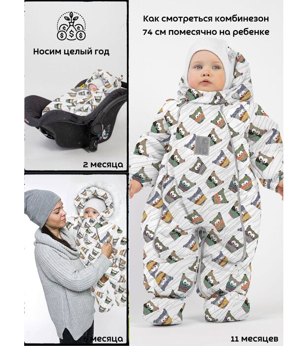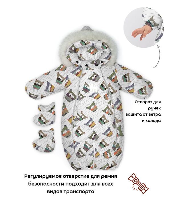 Комбинезон-конверт "трансформер", Совы на белом, 163ШМ/2