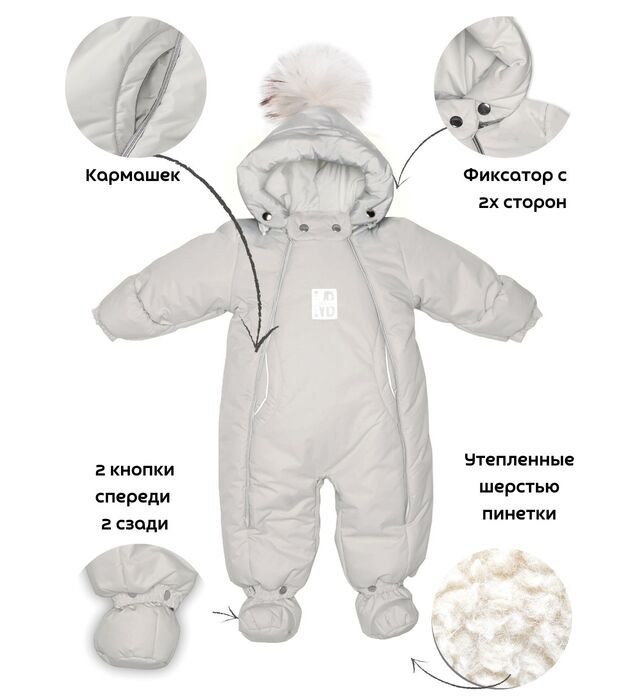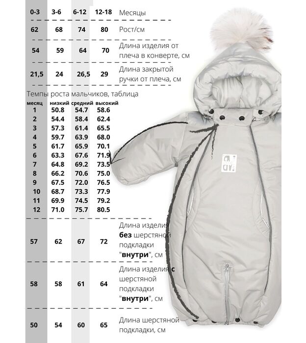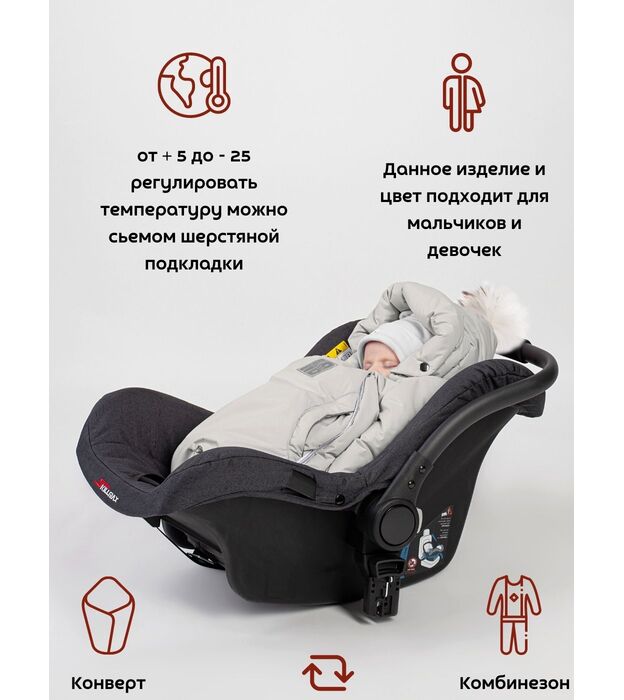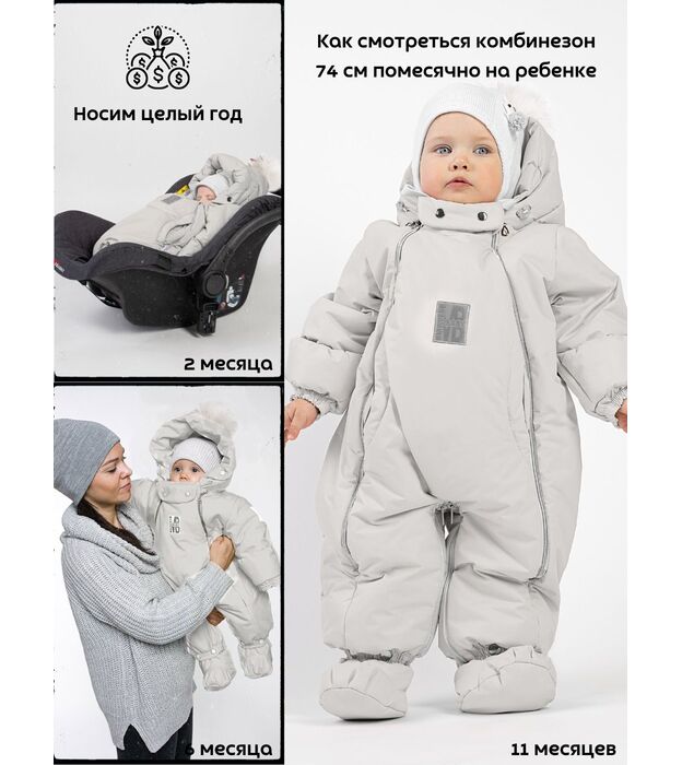 Комбинезон-конверт "трансформер", Светло-серый, 163шм/1