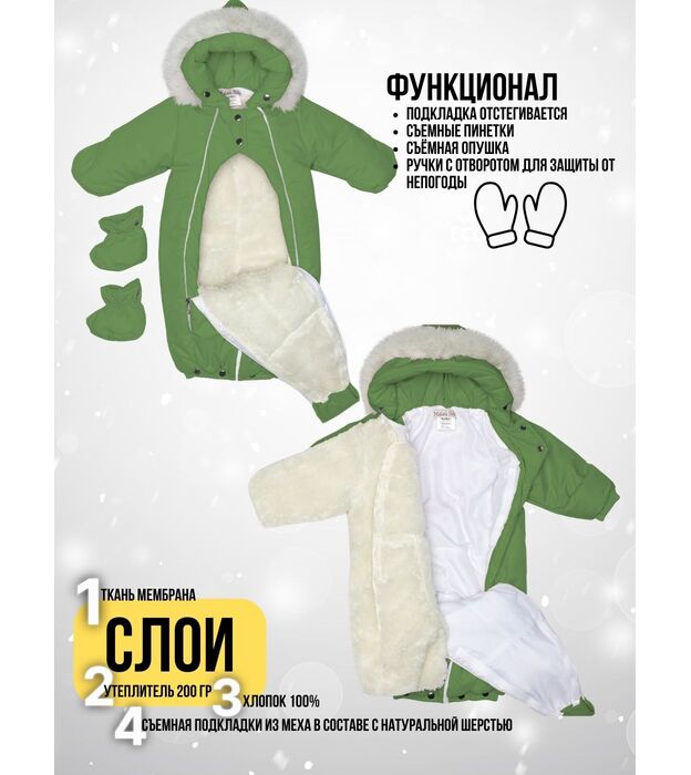 Комбинезон-конверт "трансформер", Темно-салатовый, 163ШМ/2