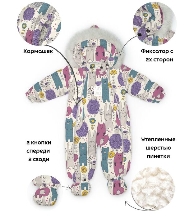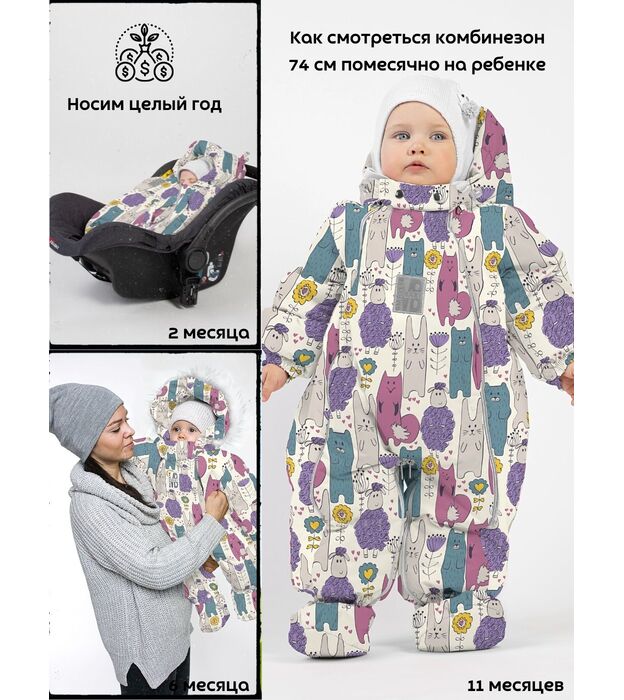 Комбинезон-конверт "трансформер", Удивительные звери, арт. 163ШМ/2