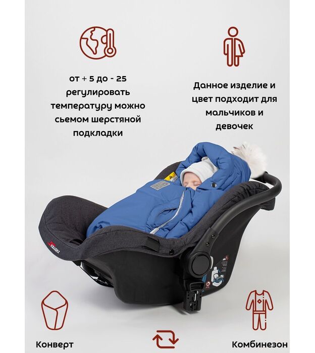Комбинезон - трансформер детский, зимний. Изготовлен, из водонепроницаемого, не продуваемого, сверхпрочного материала и утеплен съемной подкладкой, в составе которой натуральная овечья шерсть. В зависимости от возраста вашего малыша и погодных условий вы можете использовать изделие как конверт или комбинезон. В режиме конверт модель идеальна для новорожденных, позволяет не тревожить малыша при одевании и раздевании во время сна, при желании с помощью молнии конверт легко трансформируется в комбинезон. Когда потеплеет, вы можете снять шерстяную подкладку, и комбинезон подойдет для весенней погоды. Отвороты на рукавах заменяют варежки, которые согреют маленькие ручки вашего малыша в холодную погоду. Защитная планка и плотно прилегающий к голове капюшон со съемной опушкой из натурального меха защитит от сильного ветра за счет вшитой утягивающей резинки. Цветовая гамма опушки возможна в кофейном, либо белом варианте. В комплекте отстегивающиеся пинетки.