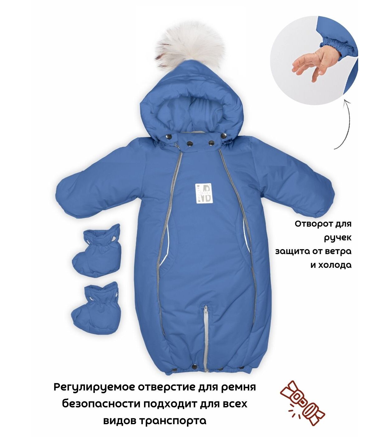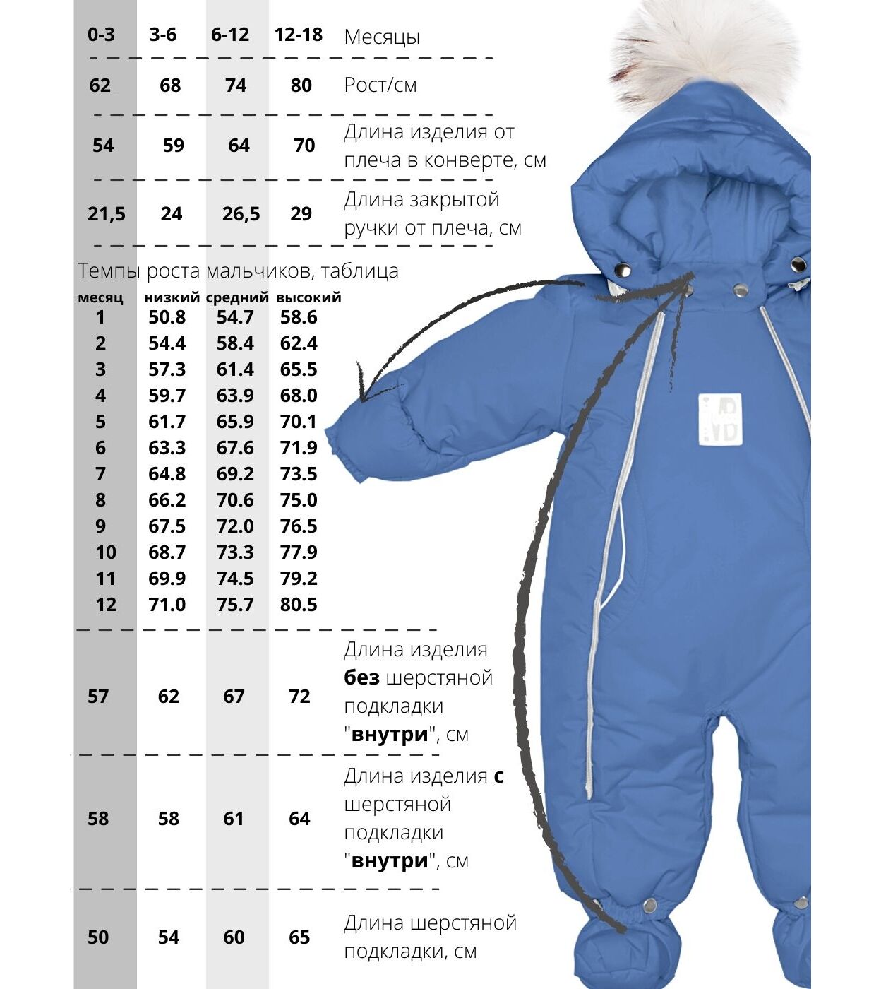 Комбинезон - трансформер детский, зимний. Изготовлен, из водонепроницаемого, не продуваемого, сверхпрочного материала и утеплен съемной подкладкой, в составе которой натуральная овечья шерсть. В зависимости от возраста вашего малыша и погодных условий вы можете использовать изделие как конверт или комбинезон. В режиме конверт модель идеальна для новорожденных, позволяет не тревожить малыша при одевании и раздевании во время сна, при желании с помощью молнии конверт легко трансформируется в комбинезон. Когда потеплеет, вы можете снять шерстяную подкладку, и комбинезон подойдет для весенней погоды. Отвороты на рукавах заменяют варежки, которые согреют маленькие ручки вашего малыша в холодную погоду. Защитная планка и плотно прилегающий к голове капюшон со съемной опушкой из натурального меха защитит от сильного ветра за счет вшитой утягивающей резинки. Цветовая гамма опушки возможна в кофейном, либо белом варианте. В комплекте отстегивающиеся пинетки.