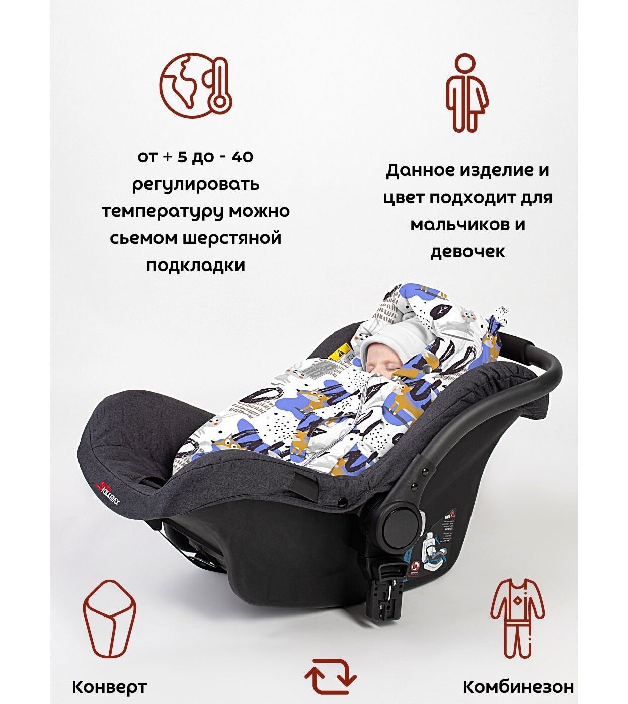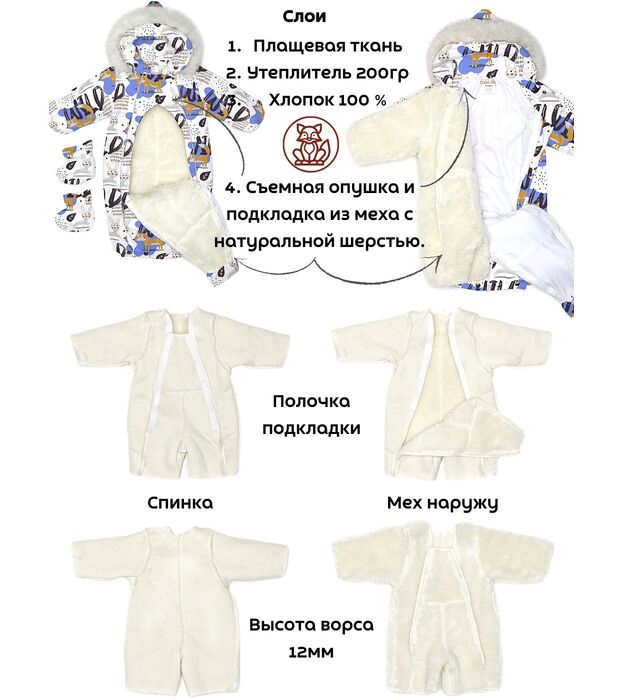 Категория: верхняя детская одежда Идеально подходит для прогулок, выписки из дома, поездок в коляске и автолюльке.