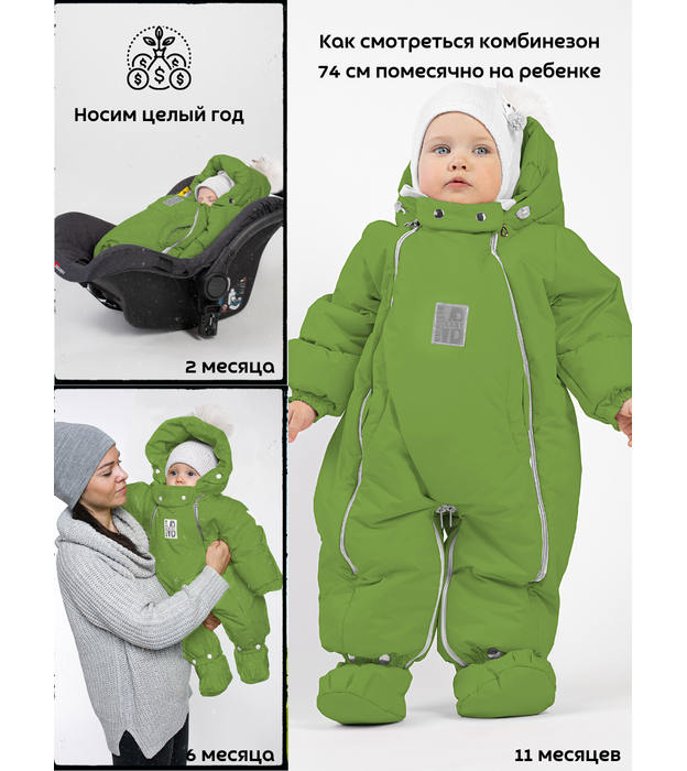 Комбинезон-конверт "трансформер", Зеленый, 163шм/1