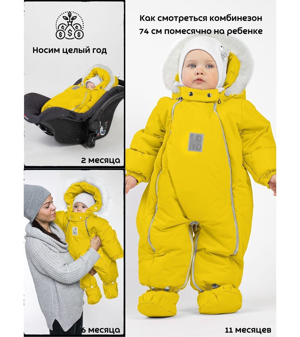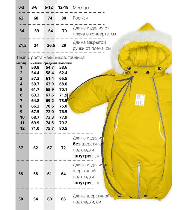 Комбинезон-конверт "трансформер", Желтый, 163шм/2