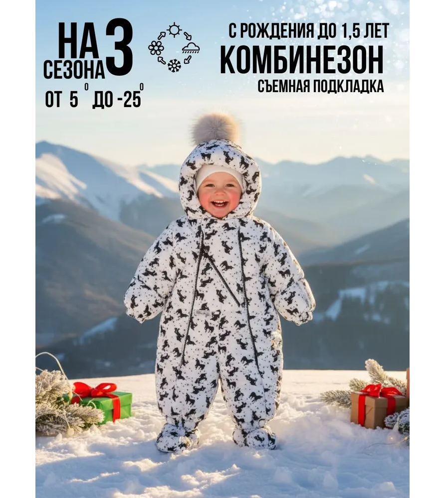Детский комбинезон-трансформер MaLeK BaBy — идеальное решение для новорождённых и малышей от 0 до 18 месяцев Откройте для себя идеальное сочетание функциональности, тепла и стиля в зимнем комбинезоне-трансформере MaLeK BaBy — созданном специально для новорождённых, чтобы защищать вашего малыша от непогоды с первых дней жизни. Этот комбинезон подходит для использования в течение трёх сезонов, благодаря продуманной системе трансформации и премиальным материалам. Особенности и преимущества: Температурный режим: от +5 до -25°C — идеален как зимний комбинезон, так и демисезонный комбинезон для новорожденных; Мембранная ткань – прочная, ветрозащитная, влагостойкая и при этом «дышащая»; Съёмная шерстяная подкладка – тёплая, дышащая, подходит для морозной зимы и легко снимается в межсезонье; Съёмные пинетки – защищают ножки от холода, легко отстёгиваются в помещении или в тёплую погоду; Отвороты на рукавах — позволяют обойтись без варежек, надёжно закрывая ручки; Капюшон с ушками и съёмной опушкой — милый дизайн и дополнительная защита от ветра; Светоотражающие элементы — повышают безопасность малыша в условиях плохой видимости; Каждое изделие проходит проверку качества — надёжность, безопасность и внимание к каждой детали. Механизм трансформации Комбинезон MaLeK BaBy — это универсальное 2-в-1 решение, которое с лёгкостью превращается из утеплённого зимнего комбинезона в демисезонный вариант: В зимнем варианте используется съёмная подкладка с натуральным шерстяным волокном — идеальный выбор для температуры до -25°С. Весной и осенью подкладка легко извлекается, и комбинезон становится лёгким и комфортным даже при +5°C. Съёмные пинетки и возможность трансформации ножек с помощью молний позволяют быстро адаптировать изделие под обувь или использовать как конверт-комбинезон трансформер — удобно как для прогулок, так и для сна малыша. Молнии на ножках позволяют быстро расстегнуть низ и трансформировать комбинезон в классический конверт или облегчённую модель без ножек. Это особенно удобно в коляске, на переодевании или при смене погоды. Назначение и аудитория Комбинезон-трансформер MaLeK BaBy идеально подойдёт: для новорожденных и детей до 18 месяцев; как первый зимний комбинезон для малыша; для родителей, ищущих детские комбинезоны трансформеры, совмещающие стиль и практичность; для тех, кто хочет купить комбинезон трансформер зимний с возможностью ношения в межсезонье. Почему выбирают MaLeK BaBy: Безопасность и проверенное качество; Высокотехнологичные материалы и пошив; Изысканный внешний вид с капюшоном-«ушки»; Производство с учётом потребностей российских родителей и климата.