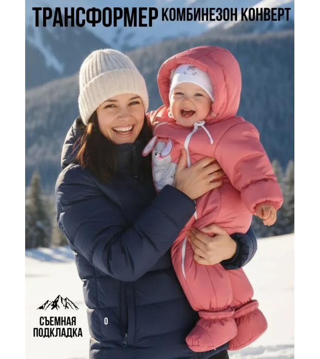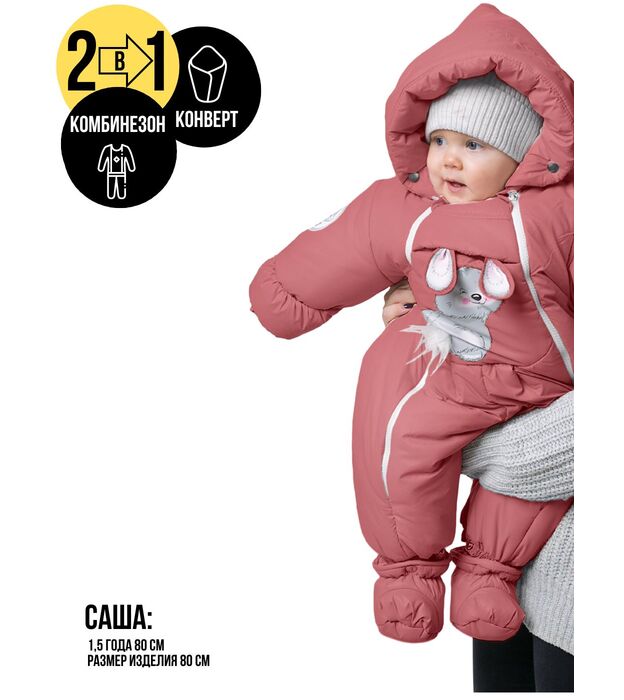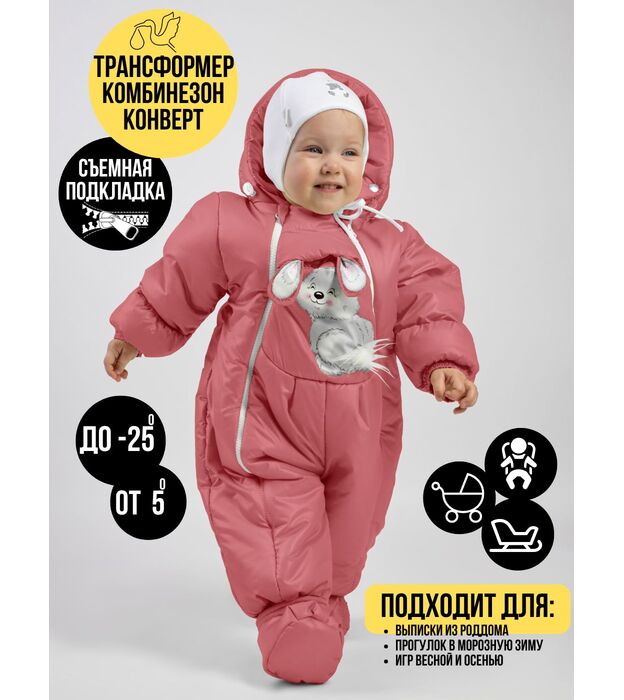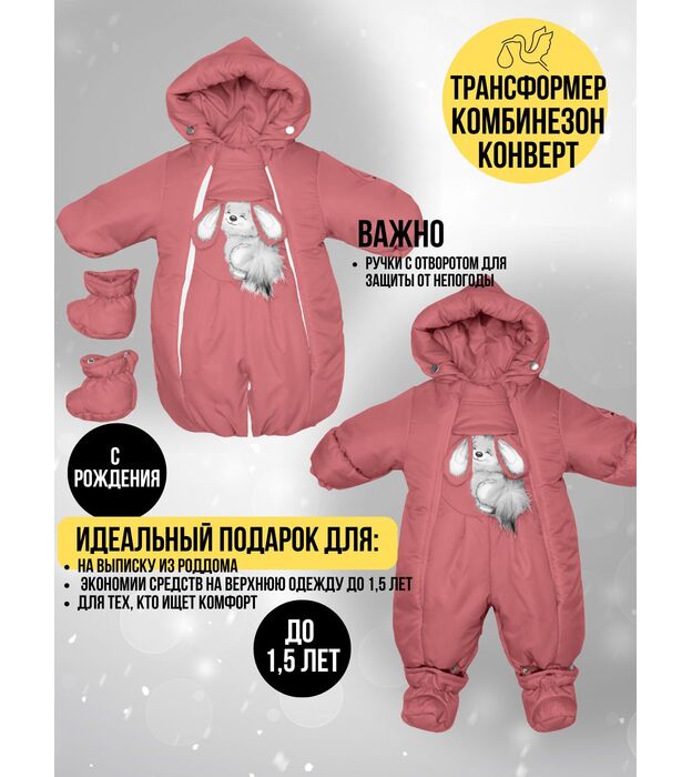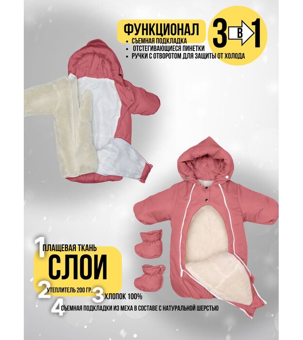 Комбинезон-конверт "трансформер", Зима, Коралловый арт. 147шм