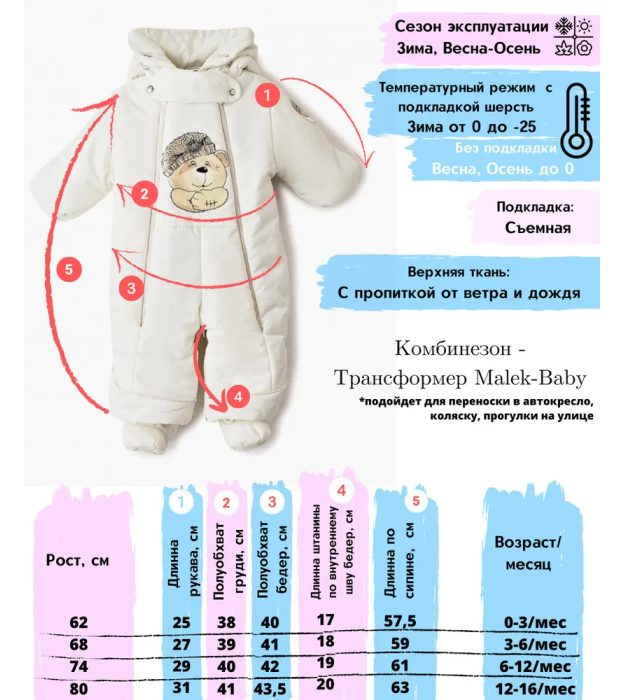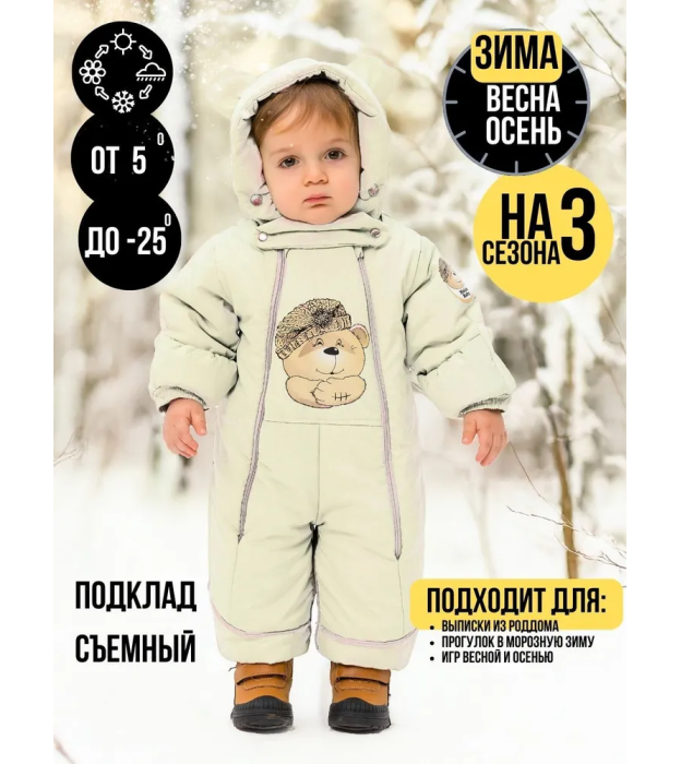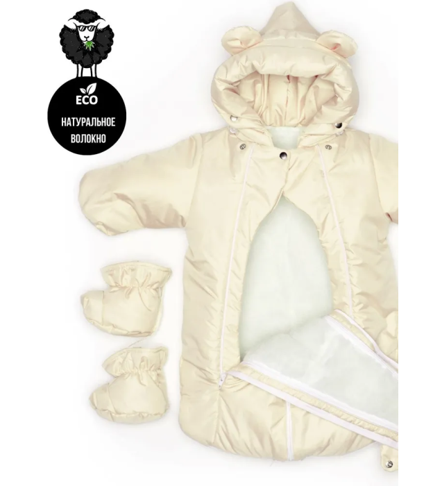 Комбинезон-конверт "трансформер", Зима,подклад с содер. шерсти отстёг. Сливки медведь ,арт. 167шм