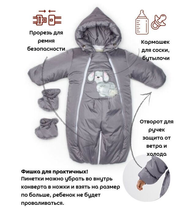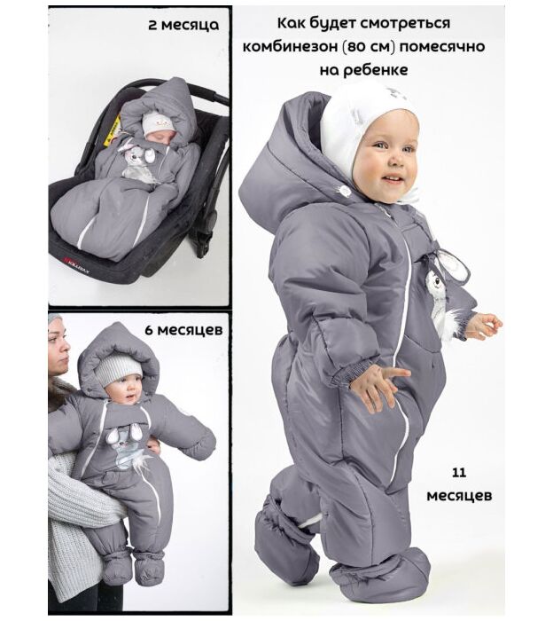 Комбинезон-конверт "трансформер", Зима, Серый арт.147шм
