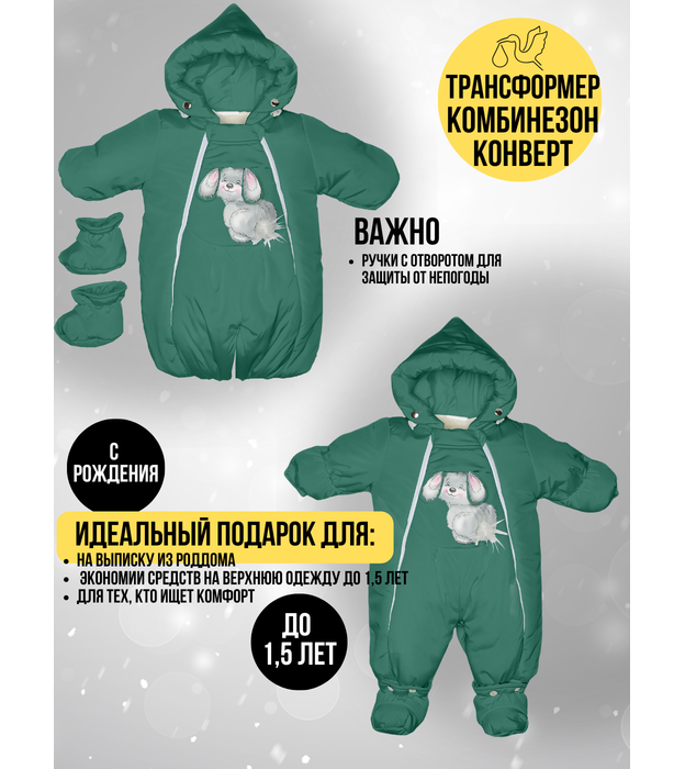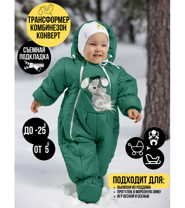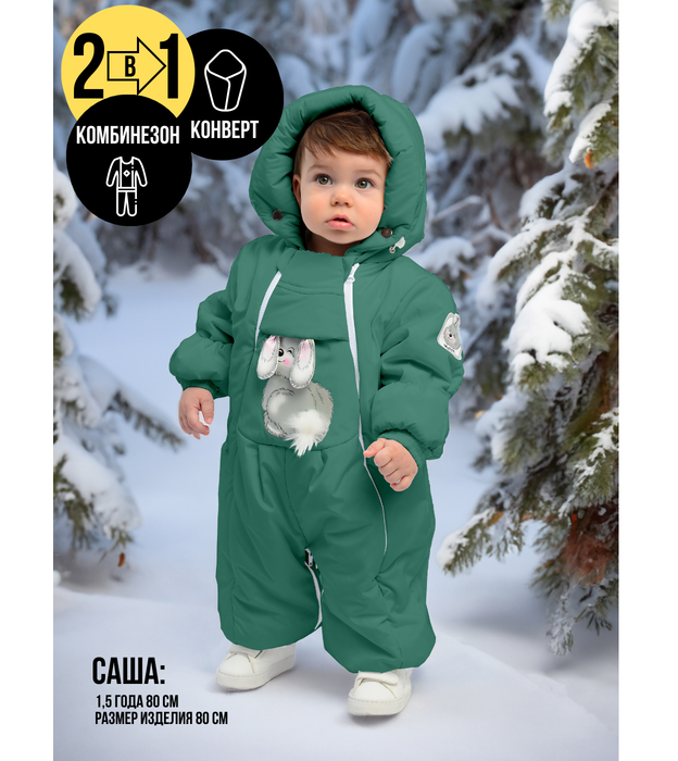Комбинезон-конверт "трансформер", Зима, Зеленый арт.147шм