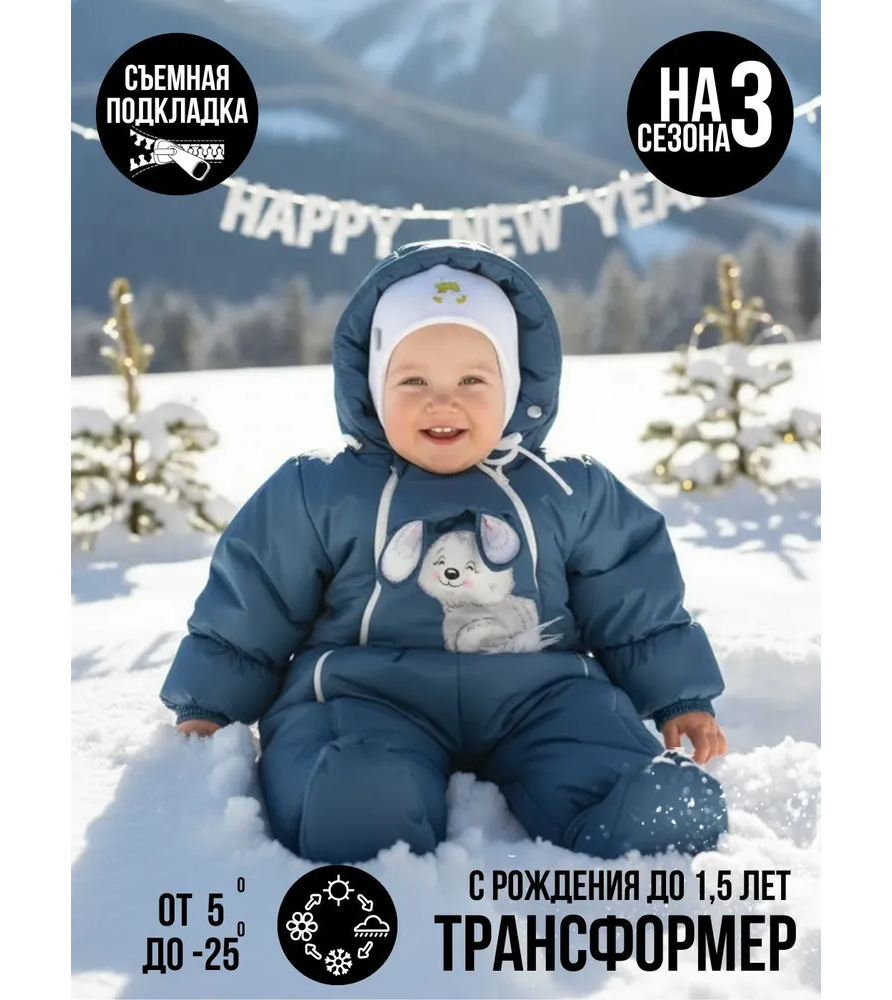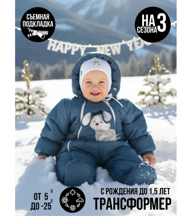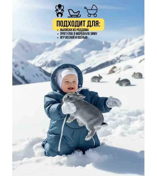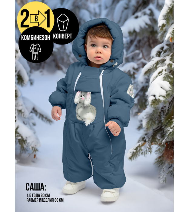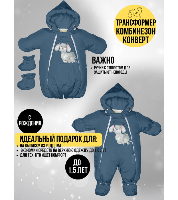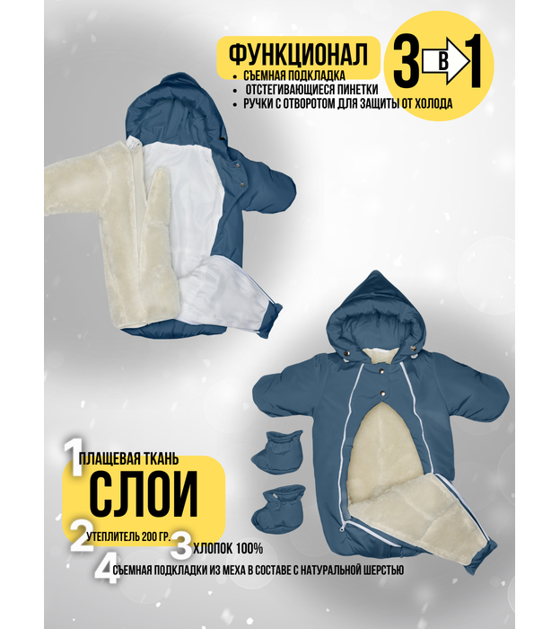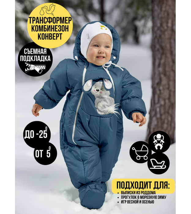 Комбинезон-конверт "трансформер", Зима, Серо-голубой арт.147шм