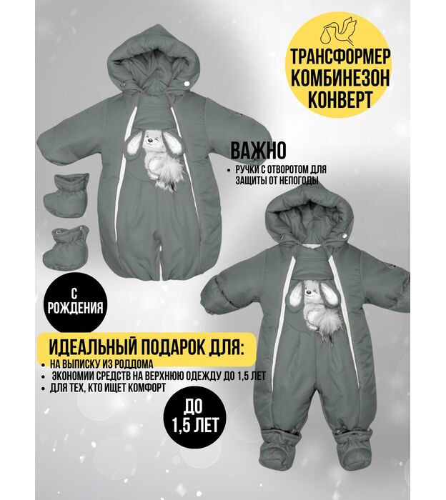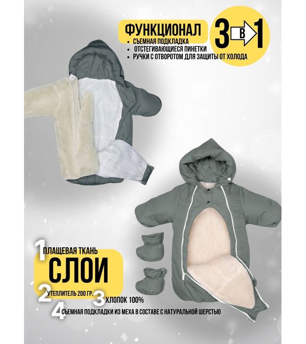 Комбинезон-конверт "трансформер", Зима, Серо-зеленый арт. 147шм