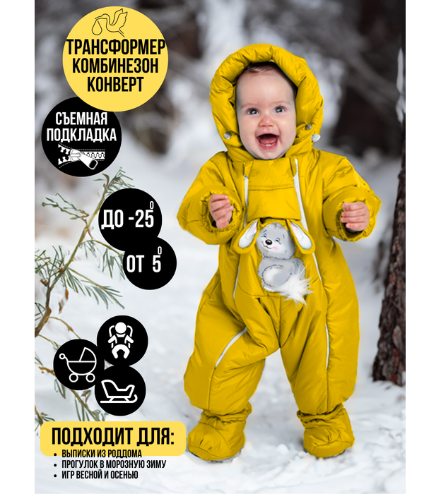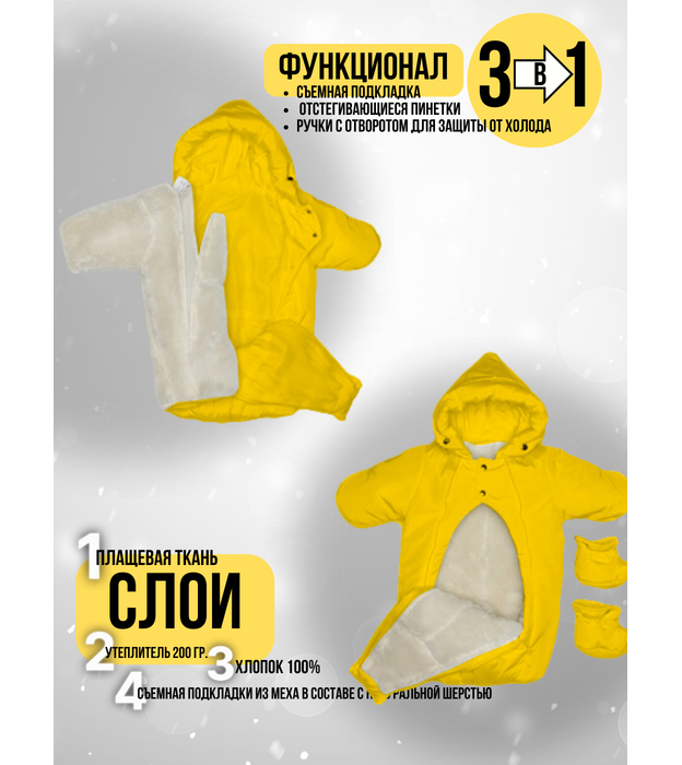 Комбинезон-конверт "трансформер", Зима, Желтый арт.147шм