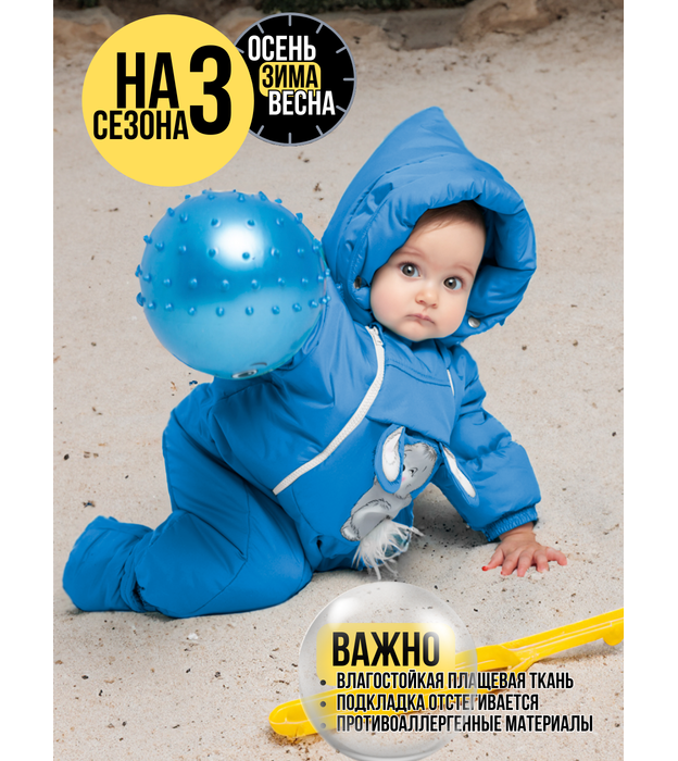 Комбинезон-трансформер детский зимний. Изготовлен из водонепроницаемого, не продуваемого, сверхпрочного материала и утеплен съемной подкладкой, в составе которой натуральная овечья шерсть. Он прослужит вашему малышу не один сезон, в зависимости от возраста вашего малыша и погодных условий вы можете использовать изделие как конверт или комбинезон. В режиме конверт модель идеальна для новорожденных, позволяет не тревожить малыша при одевании и раздевании во время сна, при желании с помощью молнии конверт легко трансформируется в комбинезон. Когда потеплеет, вы можете снять шерстяную подкладку, и комбинезон подойдет для весенней погоды. Отвороты на рукавах заменяют варежки, которые согреют маленькие ручки вашего малыша в холодную погоду. Плотно прилегающий к голове капюшон защитит от сильного ветра за счет вшитой утягивающей резинки. В комплекте идут отстегивающиеся пинетки, которые, будут греть ножки, и не будут выделяться из общего стиля.