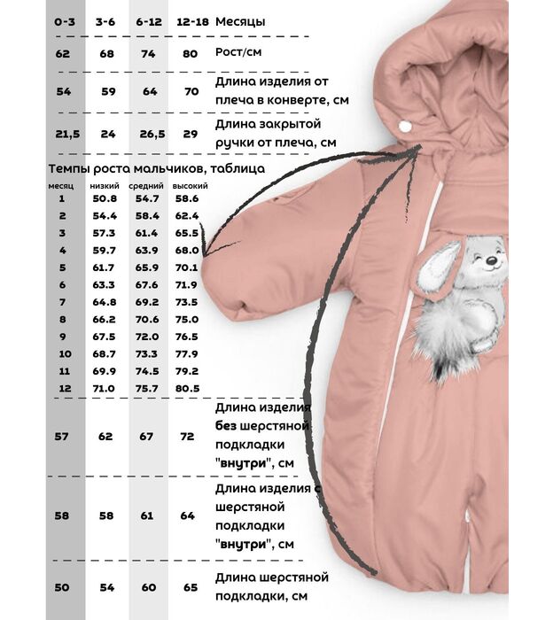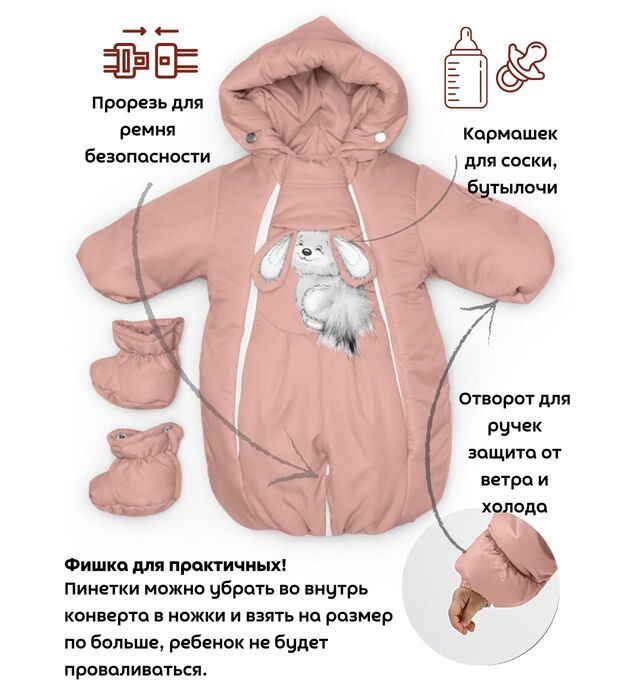 Комбинезон-трансформер, Зима, Лососевый, арт. 147шм (74 см)