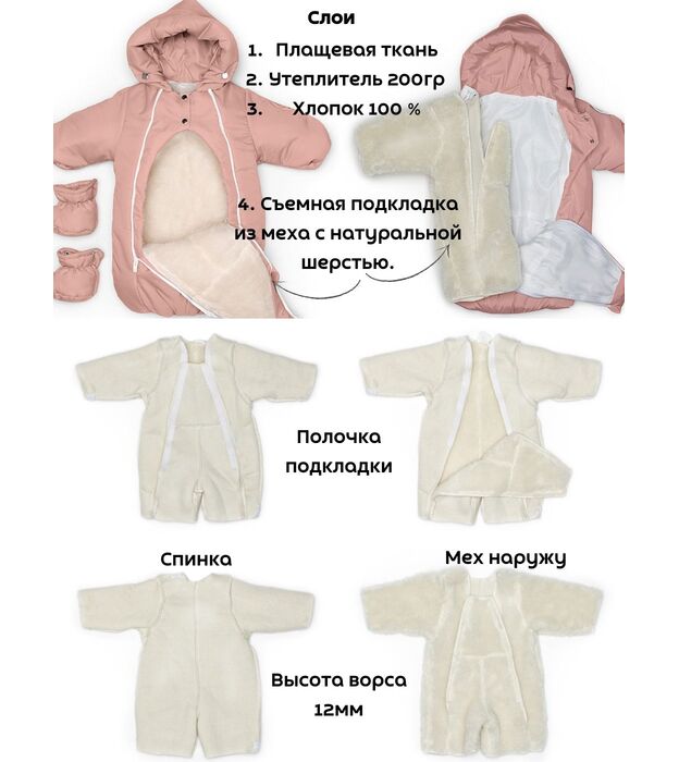 верх-100%пэ, утеплитель синтепон 200гр,подкладка съемная с содержанием шерсти 10%