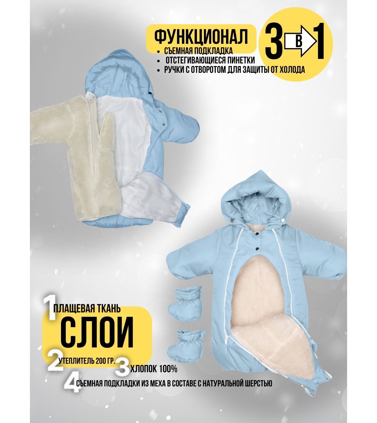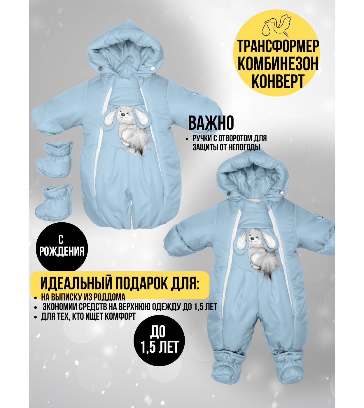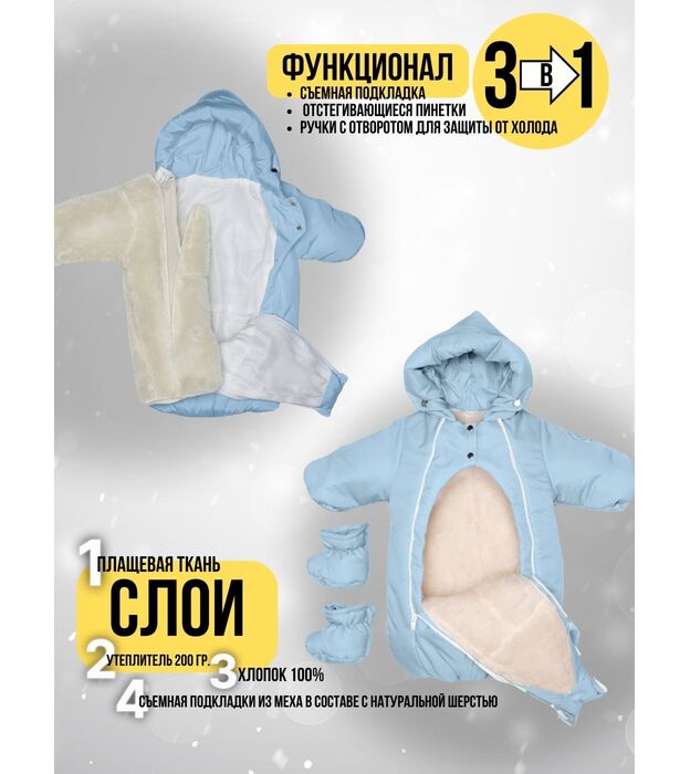 Комбинезон-конверт "трансформер", Светло-голубой, арт. 147шм