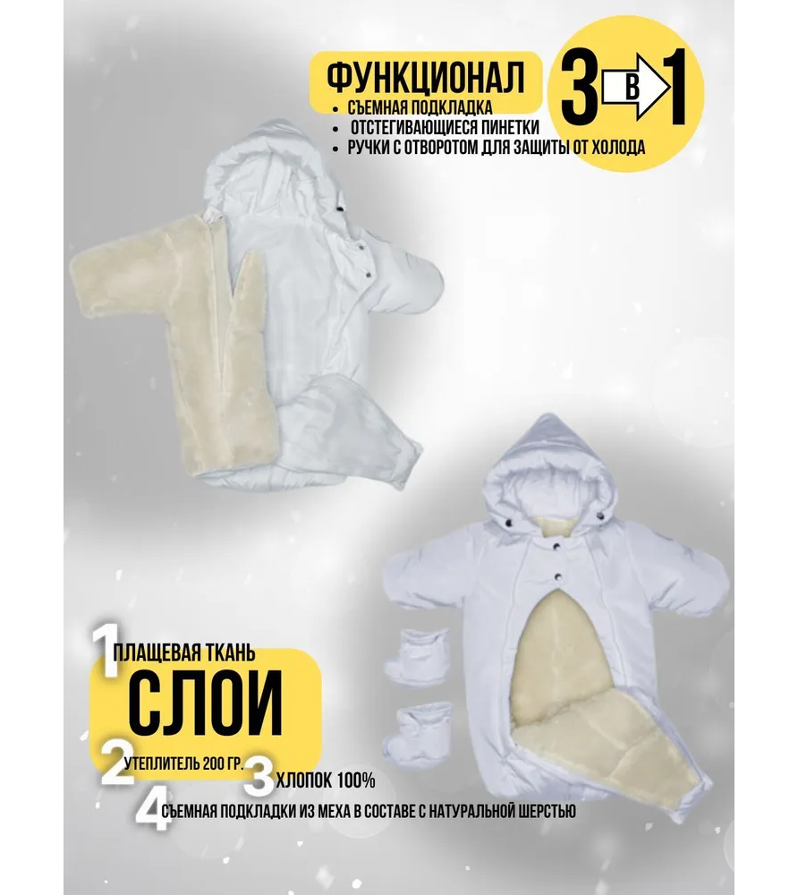 Комбинезон-"трансформер", Зима, Светло-серый УЦЕНКА,арт. 147У